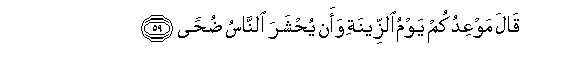 59. Qala mawAAidukum yawmu alzzeenati waan yuhshara alnnasu duhan