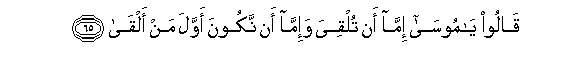 65. Qaloo ya moosa imma an tulqiya wa-imma an nakoona awwala man alqa