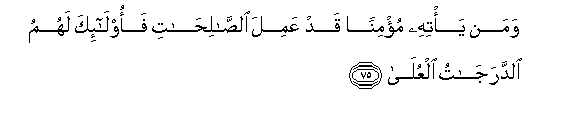 75. Waman ya/tihi mu/minan qad AAamila alssalihati faola-ika lahumu alddarajatu alAAula