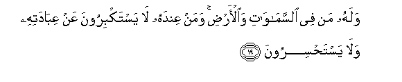 19. Walahu man fee alssamawati waal-ardi waman AAindahu la yastakbiroona AAan AAibadatihi wala yastahsiroona