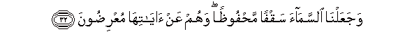 32. WajaAAalna alssamaa saqfan mahfoothan wahum AAan ayatiha muAAridoona