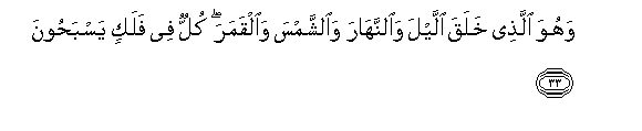 33. Wahuwa allathee khalaqa allayla waalnnahara waalshshamsa waalqamara kullun fee falakin yasbahoona