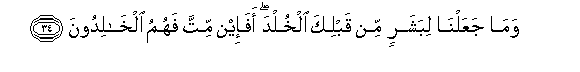34. Wama jaAAalna libasharin min qablika alkhulda afa-in mitta fahumu alkhalidoona