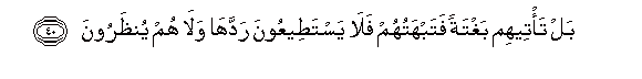 40. Bal ta/teehim baghtatan fatabhatuhum fala yastateeAAoona raddaha wala hum yuntharoona