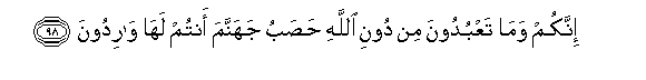 98. Innakum wama taAAbudoona min dooni Allahi hasabu jahannama antum laha waridoona