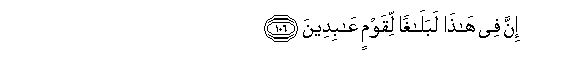 106. Inna fee hatha labalaghan liqawmin AAabideena