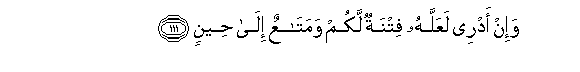 111. Wa-in adree laAAallahu fitnatun lakum wamataAAun ila heenin