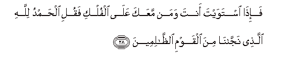 28. Fa-itha istawayta anta waman maAAaka AAala alfulki faquli alhamdu lillahi allathee najjana mina alqawmi alththalimeena