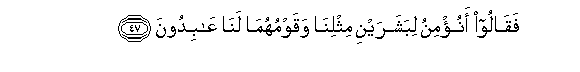 47. Faqaloo anu/minu libasharayni mithlina waqawmuhuma lana AAabidoona