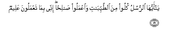 51. Ya ayyuha alrrusulu kuloo mina alttayyibati waiAAmaloo salihan innee bima taAAmaloona AAaleemun