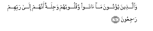 60. Waallatheena yu/toona ma ataw waquloobuhum wajilatun annahum ila rabbihim rajiAAoona