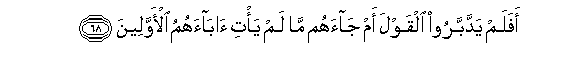 68. Afalam yaddabbaroo alqawla am jaahum ma lam ya/ti abaahumu al-awwaleena