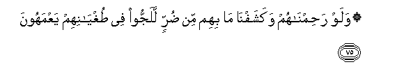 75. Walaw rahimnahum wakashafna ma bihim min durrin lalajjoo fee tughyanihim yaAAmahoona