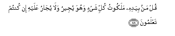 88. Qul man biyadihi malakootu kulli shay-in wahuwa yujeeru wala yujaru AAalayhi in kuntum taAAlamoona
