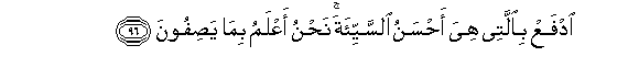 96. IdfaAA biallatee hiya ahsanu alssayyi-ata nahnu aAAlamu bima yasifoona