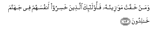 103. Waman khaffat mawazeenuhu faola-ika allatheena khasiroo anfusahum fee jahannama khalidoona
