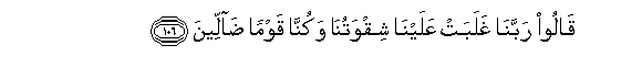 106. Qaloo rabbana ghalabat AAalayna shiqwatuna wakunna qawman dalleena