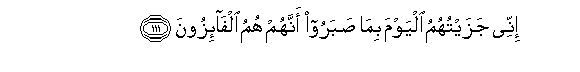 111. Innee jazaytuhumu alyawma bima sabaroo annahum humu alfa-izoona