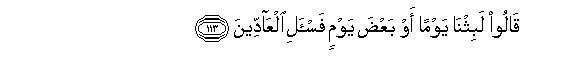 113. Qaloo labithna yawman aw baAAda yawmin fais-ali alAAaddeena