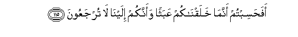 115. Afahasibtum annama khalaqnakum AAabathan waannakum ilayna la turjaAAoona