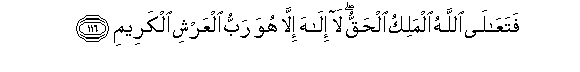 116. FataAAala Allahu almaliku alhaqqu la ilaha illa huwa rabbu alAAarshi alkareemi