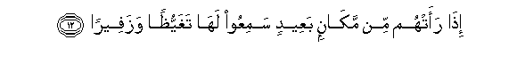 12. Itha raat-hum min makanin baAAeedin samiAAoo laha taghayyuthan wazafeeran