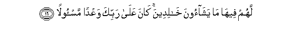 16. Lahum feeha ma yashaoona khalideena kana AAala rabbika waAAdan mas-oolan