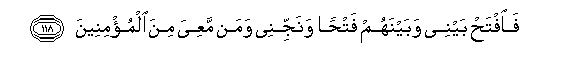 118. Faiftah baynee wabaynahum fathan wanajjinee waman maAAiya mina almu/mineena