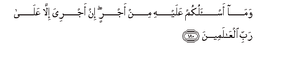 180. Wama as-alukum AAalayhi min ajrin in ajriya illa AAala rabbi alAAalameena