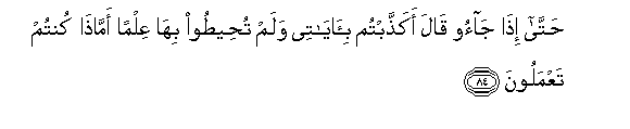 84. Hatta itha jaoo qala akaththabtum bi-ayatee walam tuheetoo biha AAilman ammatha kuntum taAAmaloona