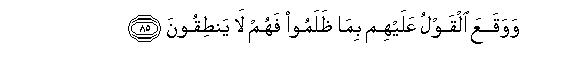 85. WawaqaAAa alqawlu AAalayhim bima thalamoo fahum la yantiqoona