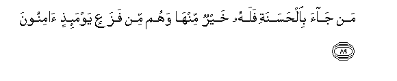 89. Man jaa bialhasanati falahu khayrun minha wahum min fazaAAin yawma-ithin aminoona