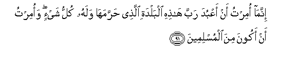91. Innama omirtu an aAAbuda rabba hathihi albaldati allathee harramaha walahu kullu shay-in waomirtu an akoona mina almuslimeena