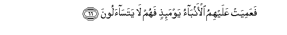 66. FaAAamiyat AAalayhimu al-anbao yawma-ithin fahum la yatasaaloona