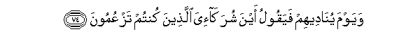 74. Wayawma yunadeehim fayaqoolu ayna shuraka-iya allatheena kuntum tazAAumoona