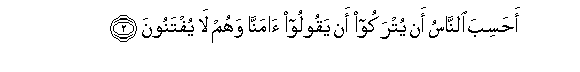 2. Ahasiba alnnasu an yutrakoo an yaqooloo amanna wahum la yuftanoona