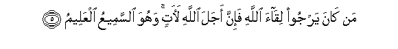 5. Man kana yarjoo liqaa Allahi fa-inna ajala Allahi laatin wahuwa alssameeAAu alAAaleemu
