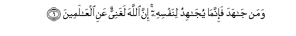 6. Waman jahada fa-innama yujahidu linafsihi inna Allaha laghaniyyun AAani alAAalameena