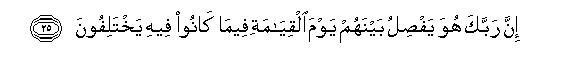 25. Inna rabbaka huwa yafsilu baynahum yawma alqiyamati feema kanoo feehi yakhtalifoona