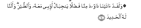 10. Walaqad atayna dawooda minna fadlan ya jibalu awwibee maAAahu waalttayra waalanna lahu alhadeeda