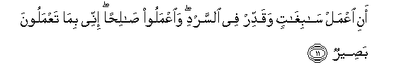 11. Ani iAAmal sabighatin waqaddir fee alssardi waiAAmaloo salihan innee bima taAAmaloona baseerun