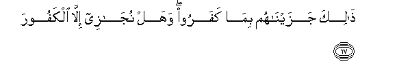 17. Thalika jazaynahum bima kafaroo wahal nujazee illa alkafoora