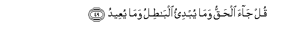 49. Qul jaa alhaqqu wama yubdi-o albatilu wama yuAAeedu