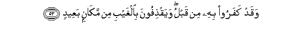 53. Waqad kafaroo bihi min qablu wayaqthifoona bialghaybi min makanin baAAeedin