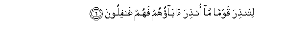 6. Litunthira qawman ma onthira abaohum fahum ghafiloona
