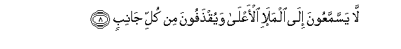 8. La yassammaAAoona ila almala-i al-aAAla wayuqthafoona min kulli janibin