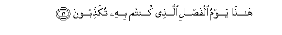 21. Hatha yawmu alfasli allathee kuntum bihi tukaththiboona