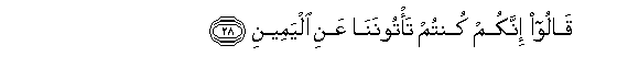 28. Qaloo innakum kuntum ta/toonana AAani alyameeni