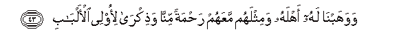 43. Wawahabna lahu ahlahu wamithlahum maAAahum rahmatan minna wathikra li-olee al-albabi