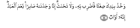 44. Wakhuth biyadika dighthan faidrib bihi wala tahnath inna wajadnahu sabiran niAAma alAAabdu innahu awwabun
